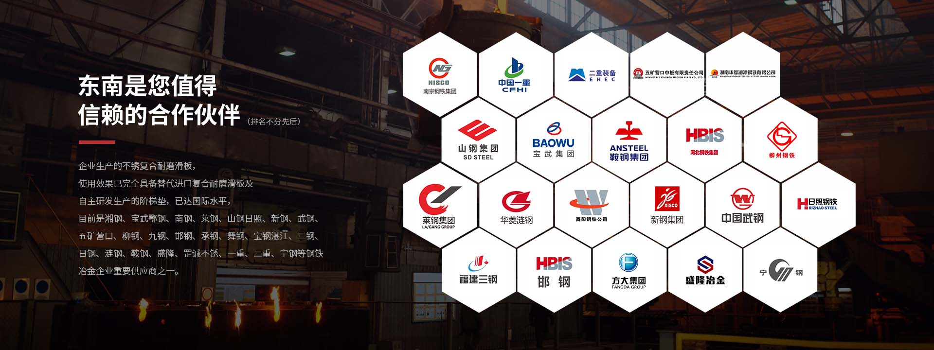 溫州東南工業機械實業有限公司創辦于1994年,是一家集研發、制造、銷售、安裝服務為一體的冶金設備配套制造企業。企業專業從事冶金設備及各種非標件等產品的科研、國產化開發、生產、安裝服務的現代化高新科技企業。并在2006年公司憑著卓越的市場開拓能力和良好的產品銷售業績與科研單位合作研制開發了:軋機機架與軋輥軸承座之間不銹復合耐磨滑板、剪機高性能滑板系列、自潤滑耐磨板、高壓除鱗閥及標印機零部件的國產化,并經多家企業投產使用。不銹復合耐磨滑板完全達到可以替代國外公司原裝廠配件的使用壽命。并對軋機階梯墊進行改進。階梯墊基板材料采用DNTZ-80合金鋼鍛件,在階梯墊硬面層采用耐腐蝕高耐磨合金材料熔焊焊接工藝。 產品具有良好的抗沖擊性,高耐磨性,耐腐蝕性及力學性。是原階梯墊使用壽命3倍以上,至今已擁有十分成熟的制造技術,并且得到國內鋼鐵企業的認可和好評。